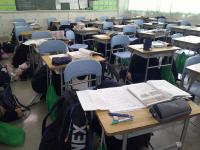 ジェイクアウト訓練 投稿日時 : 11/05 今日は、校内で「シェイクアウト訓練」を行いました。 深谷市が毎年実施している訓練に本校も参加したものです。 この「シェイクアウト訓練」は、2008年にアメリカで始まった 地震防災訓練だそうです。 まずは、自分の身を守るために、 「姿勢を低く、頭を守って、動かない」安全行動が大切。 生徒たちは、深谷市の放送を受け、机の下に入りこの3つの行動を 確認しました。