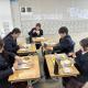 先輩たちの動きを見ながら、1年生も配膳をしました。